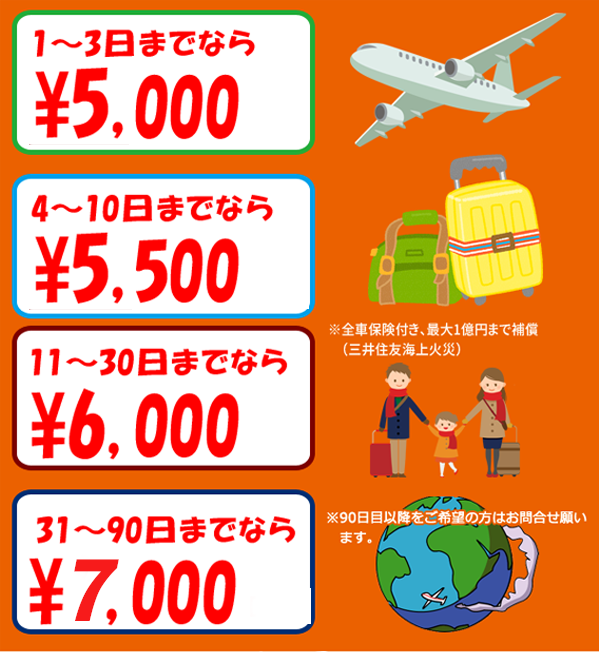 | ※お車をお預かりした後、車内に忘れ物をしてお車を再度空港へ引き返した場合、別途料金1,000円が掛かりますので車内にお忘れ物をなさらぬようご確認お願いいたします。 |